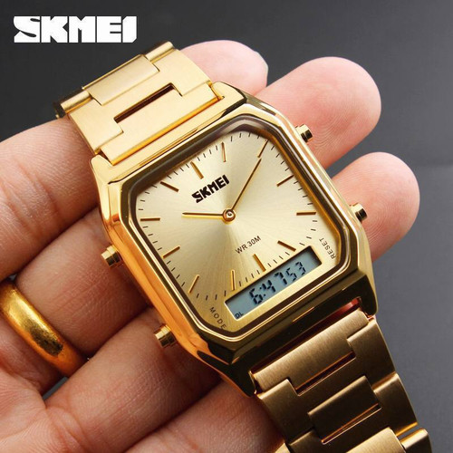 ساعت مچی دوزمانه استیل Skmei 👌🏻کیفیت عالی، ضدآب، رنگ ثابت 👌🏻دارای کرنومتر، نور زمینه، آلارم کد محصول: 609 رنگبندی: مشکی، نقرهای، طلایی، رزگلد
