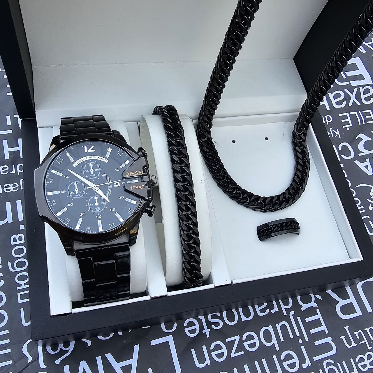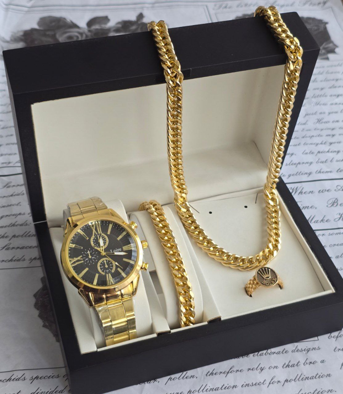ست مردانه ساعت ودستبند وانگشتر وگردنبند برند شرکتی رنگ ثابت