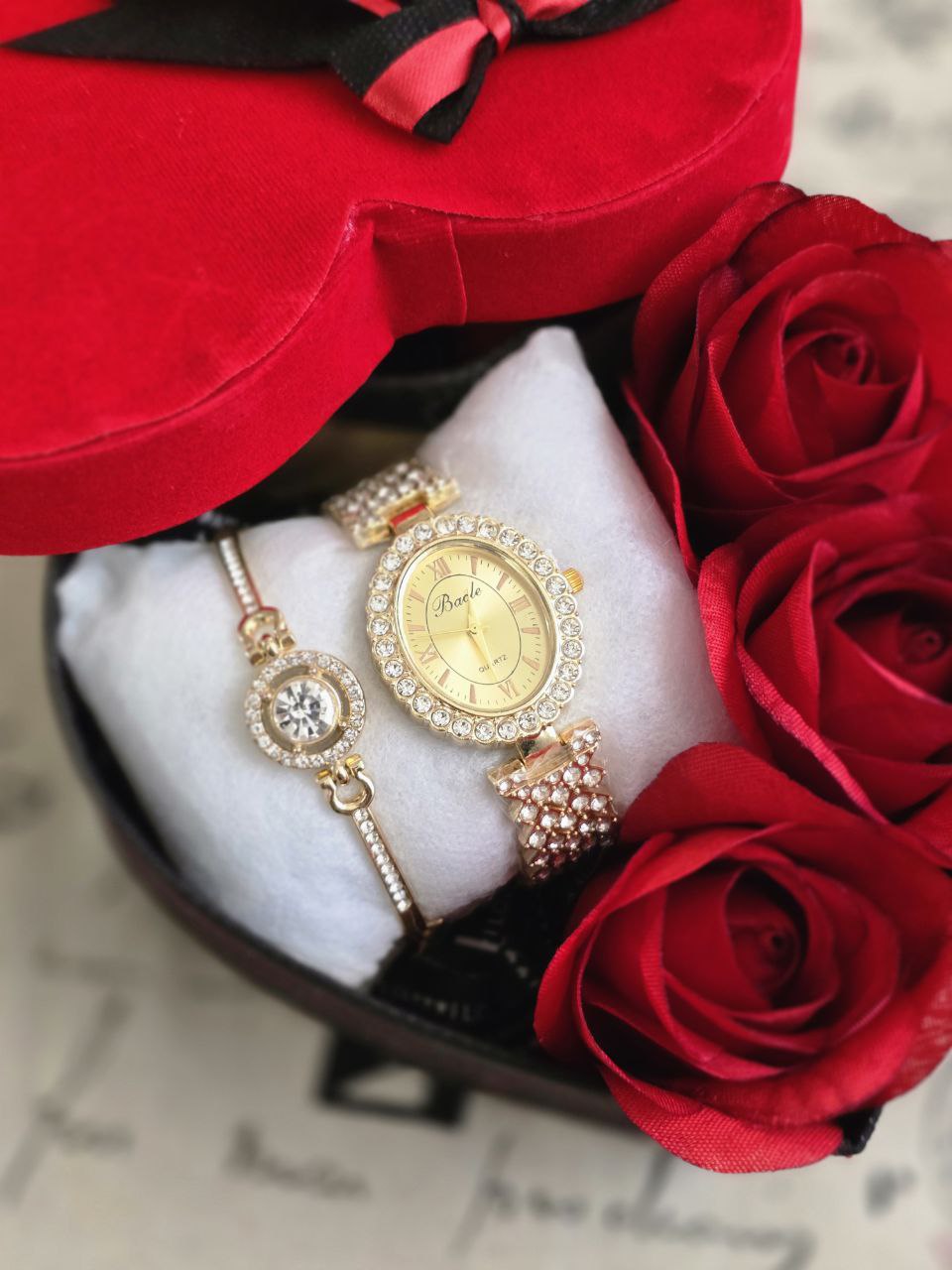 باکس هدیه زنانه و دخترانه ساعت و دستبند و باکس و گل