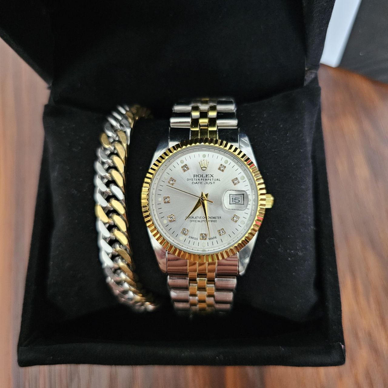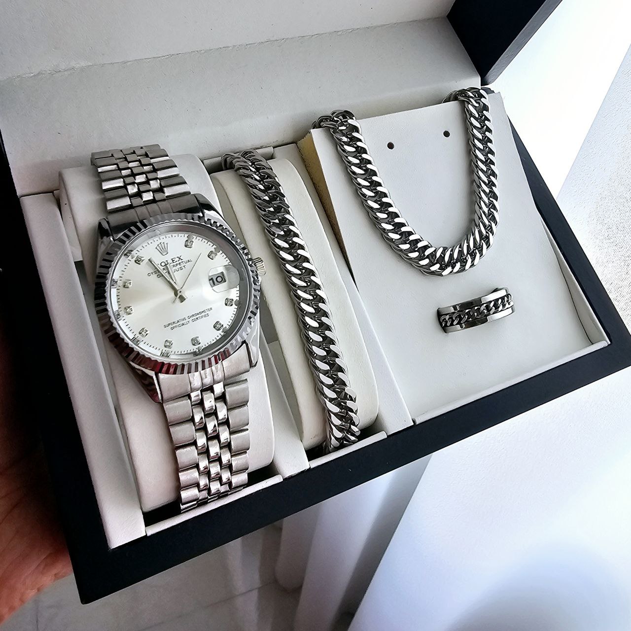 ست ساعت و دستبند وگردنبند وانگشتر مردانه برند رولکس Rolex
