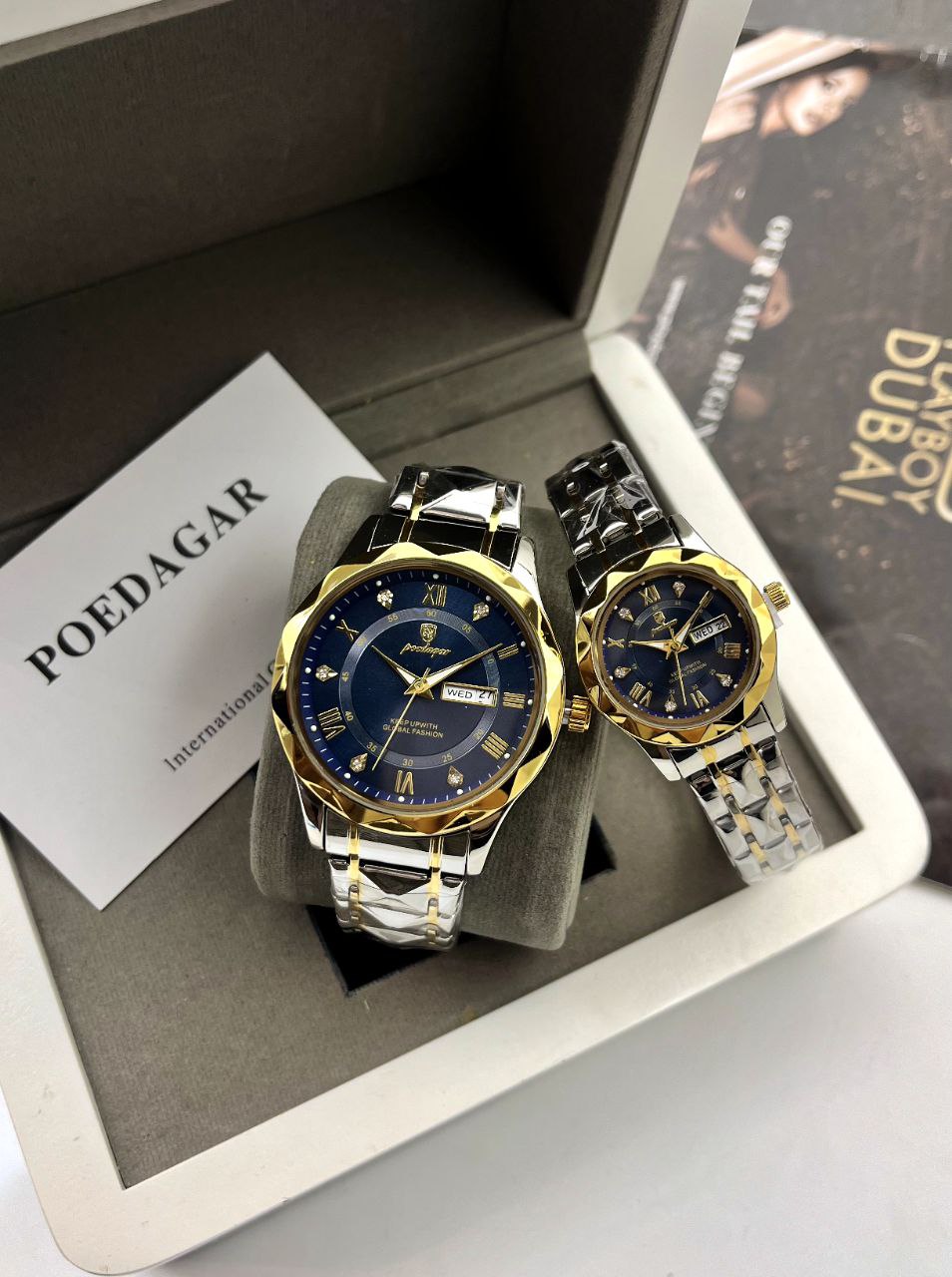 ست ساعت زنانه و مردانه برند پوداگار poedagar موتور کوارتز صفحه شب نما شیک وخاص