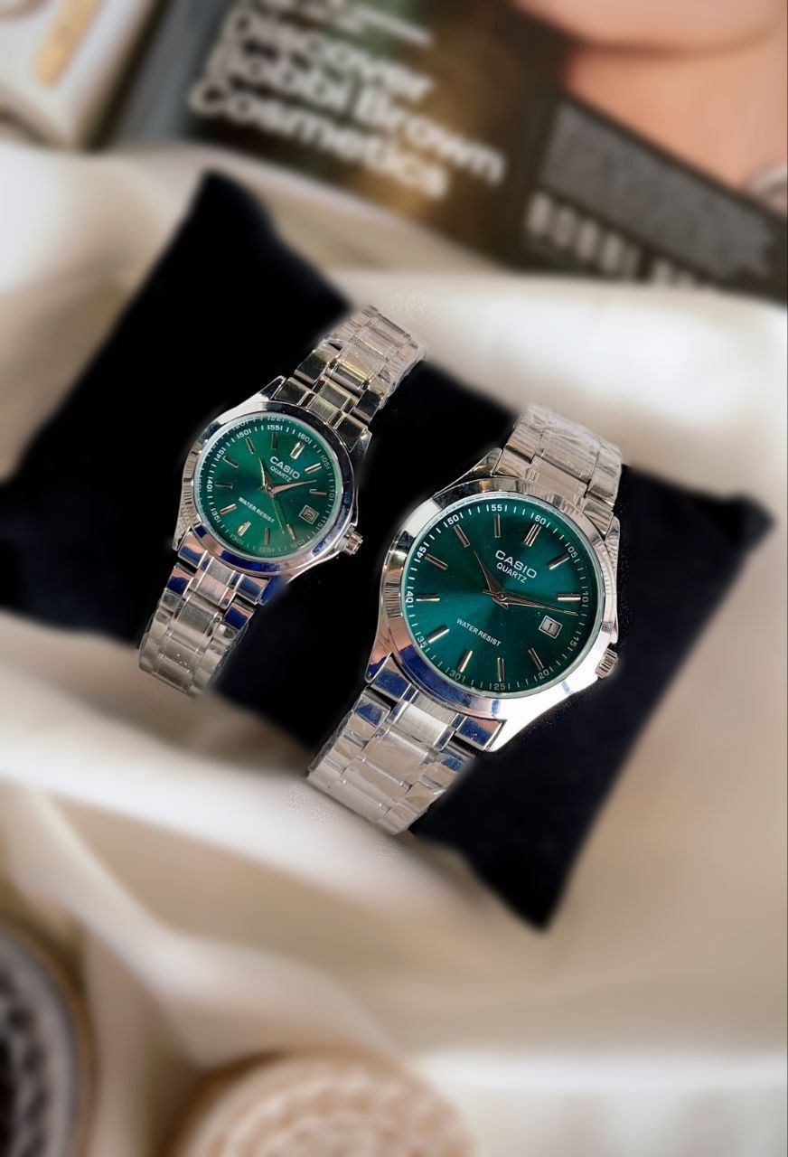 ست ساعت زنانه ومردانه برند کاسیو Casio بند استیل دارای روزشمار