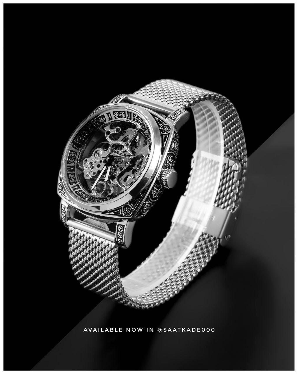 ساعت مچی مردانه اتومات Mirage (بدون نیاز به باتری) موتور ژاپن درجهیک بند استیل حصیری قاب استیل حکاکی قفل گیرهای