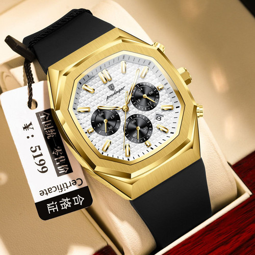 ساعت مردانه پوداگار مدلی نو کرنوگراف دارای روز شمار صفحه شب نما برند شرکتی بند رابر ضدآب