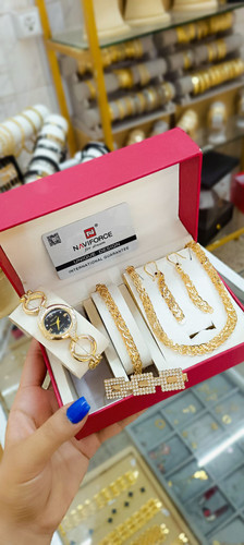 باکس هدیه زنانه و دخترانه ساعت و دستبند و نیمست استیل رنگ ثابت و باکس و گل