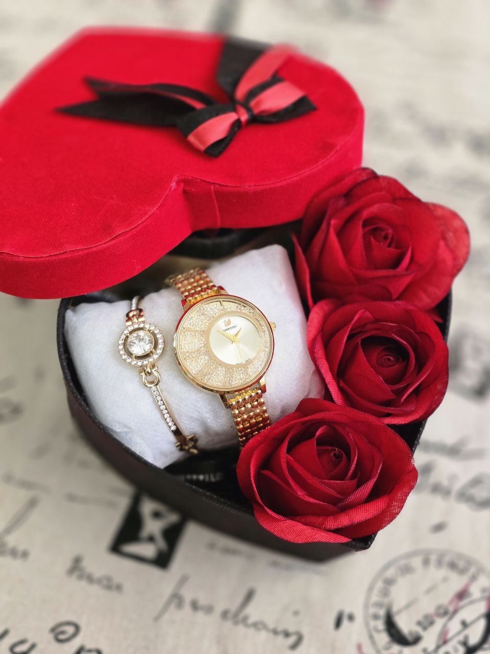باکس هدیه زنانه و دخترانه ساعت و دستبند و باکس و گل