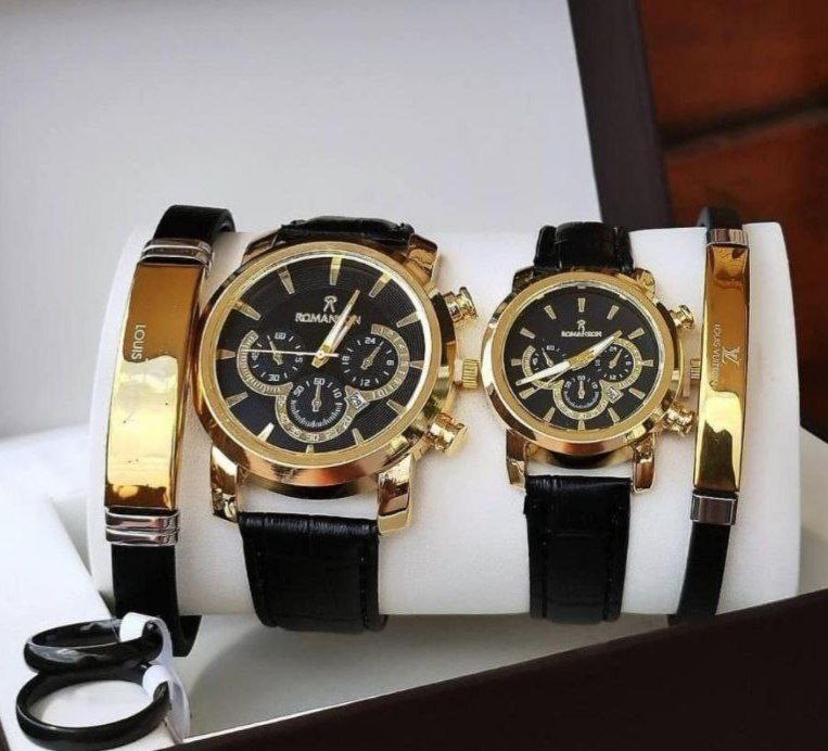 ست ساعت زنانه ومردانه برند رومانسون Romanson بند چرم قفل سگکی