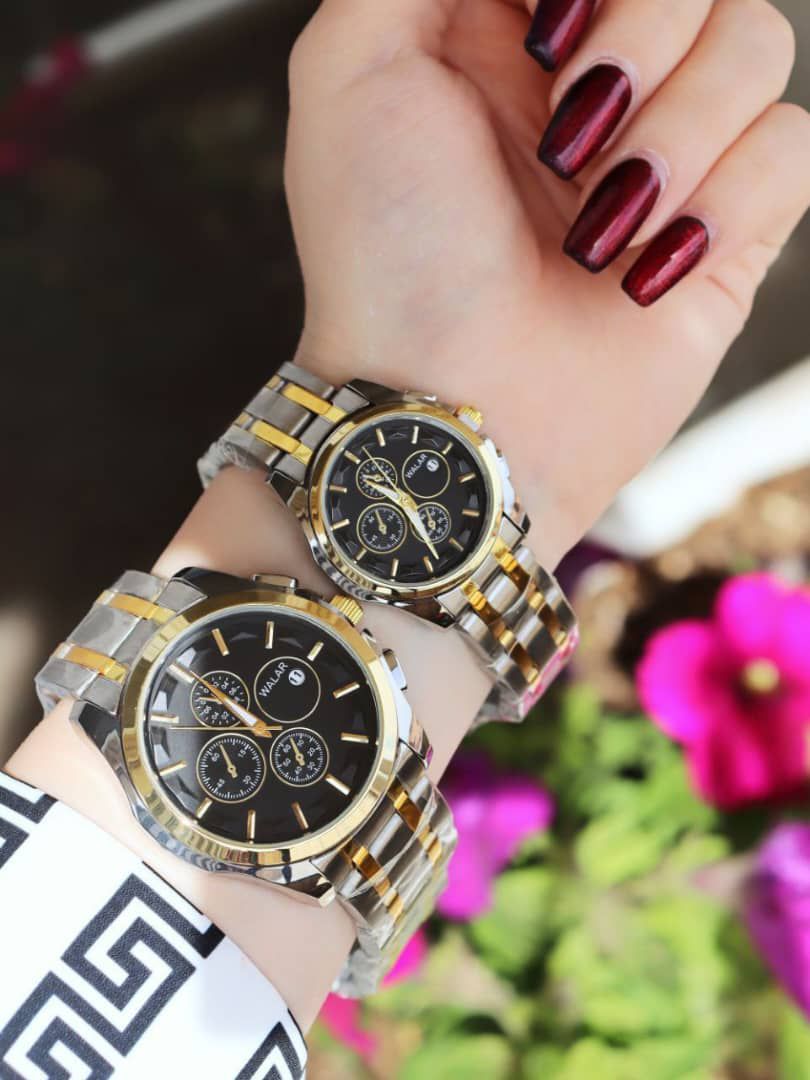 ست ساعت زنانه ومردانه برند والار WALAR روزشمار و جعبه کادویی دارد