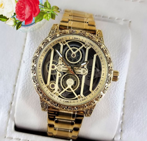 ساعت مچی مردانه maaxel طرح اتومات برای آقایان موتور کوارتز شرکتی موتور پیدا (طرح اتومات) بند استیل رنگ ثابت قاب پشت شیشه نشکن شیشه کریستال ضدخش ضدآب3Atm ۳۰