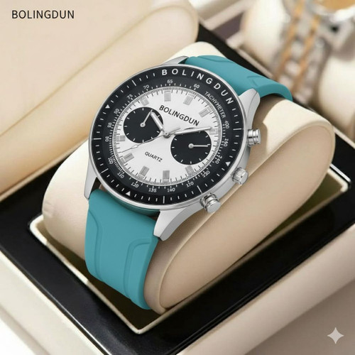 ساعت مچی مردانه کد 2299 مردانه ژله ای برند BOLINGDUN قفل سگگی باکیفیت طراحی خاص و زیبا بند ژله ای صفحه سفید موتور کوارتز طرح سه موتوره