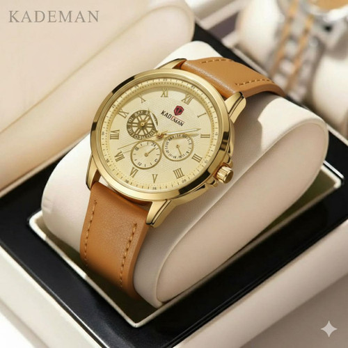 ساعت مچی مردانه کد 2270 مردانه برند KADEMAN نشانگر ۲۴ ساعته سه موتور فول تایم شمارش معکوس دارای روز شمار صفحه شب نما بندچرم اصل رنگ ثابت قفل کمربندی فولادی موتور کوارتز