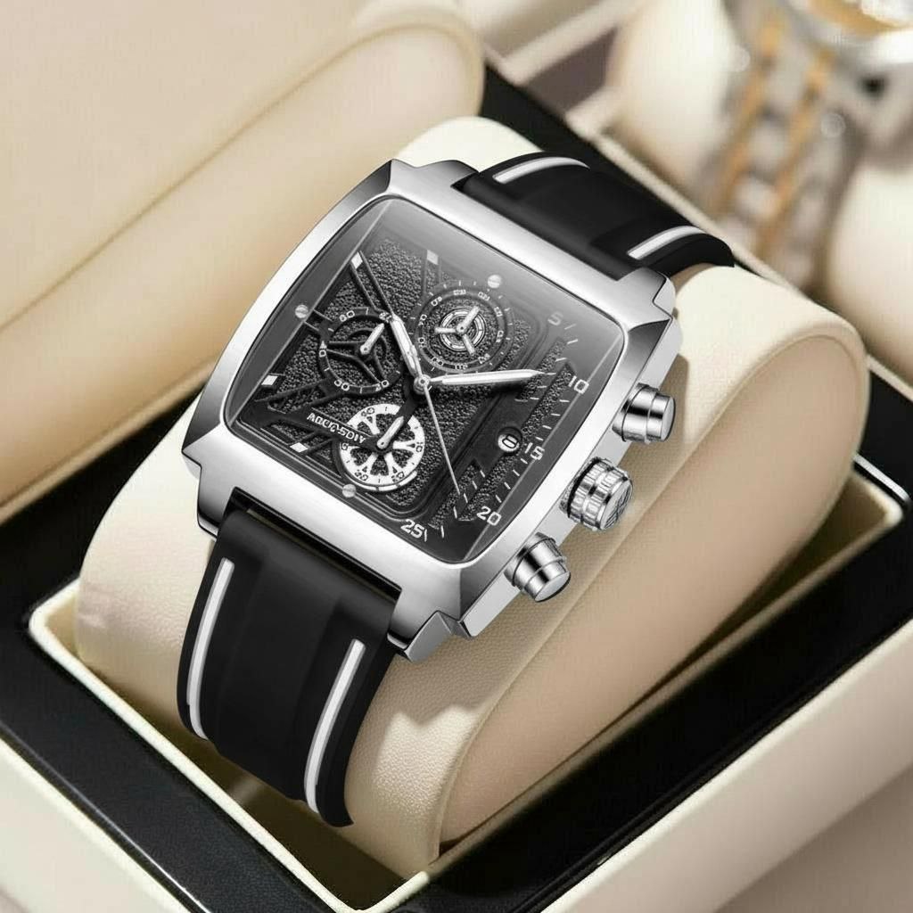 ساعت مچی مردانه ♻️ برند / aocasdiy ♻️ سه موتوره فعال ♻️ روز شمار دار ♻️ کیس استیل ♻️ بند سیلیکونی ♻️ قطر 44 میلی متر