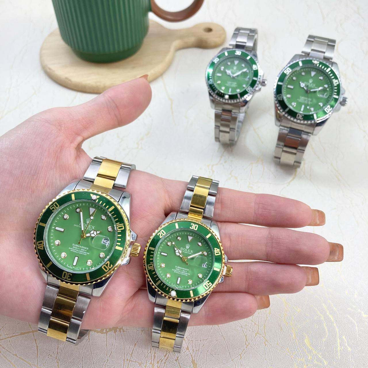 ساعت مچی تقویم دار طرح رولکس دارای دو سایز 🧕🏻زنانه و 👨🏻💼مردانه 👌🏻 سری جدید با کیفیت بسیار بالا 👌🏻 قفل ضامن دار مشابه اصل 🎁 همراه جعبه مخصوص + دستگاه تنظیم سایز بند کد محصول: 440