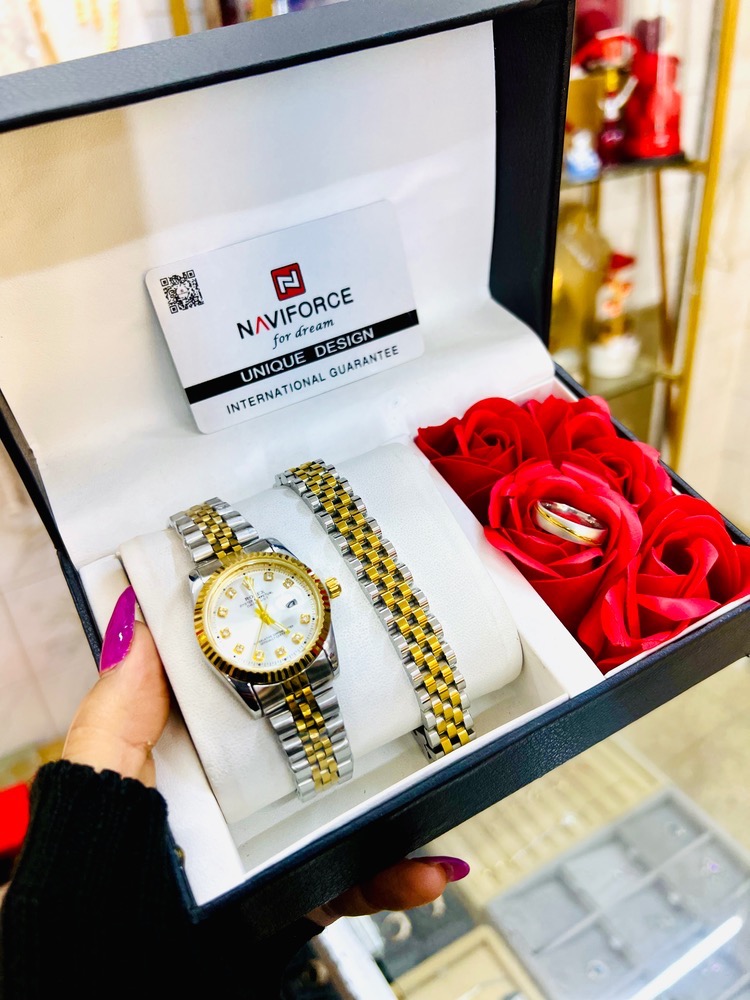 ست زنانه بی نظیر رولکس ساعت رولکس تاریخدار دستبند رولکس همراه انگشتر