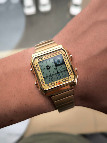 ساعت مردانه جهان نما کاسیو CASIO A130WE رنگ ثابت آلارم دار لایت دار ضد آب استخری قاب و بند استیل کیفیت بسیار عالی هک مارک روی قفل همراه با جعبه
