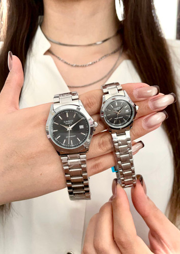 ست ساعت زنانه و مردانه ☑️CASIO ☆☆☆☆ ▪︎high quality👌 >>ست کاسیو << قفل کلیپسی کیفیت سفارشی دارای روز شمار مقاوم دربرابر آب بند استیل موتور کوارتز رنگ سیلور خاص کلاسیک