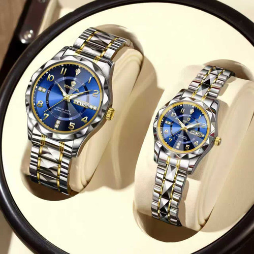 ست ساعت زنانه و مردانه ☑️BIN BOND 《highe quality》 Original watch ⌚️بین باند مدلی نو ست زنونه مردونه پرطرفدار مقاوم دربرابر آب برندشرکتی اوریجینال شب نما دارای روز شمار ایام هفته بند استیل فولاد شیشه الماسی قفل دو پروانه موتور کوارتز