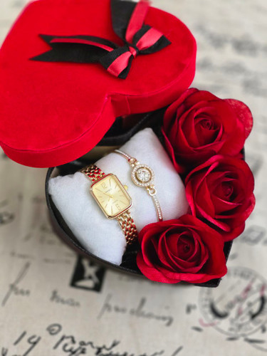 باکس هدیه زنانه و دخترانه ساعت و دستبند و باکس و گل